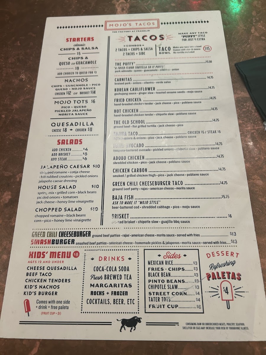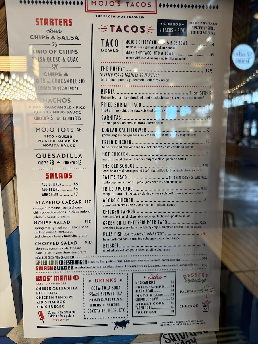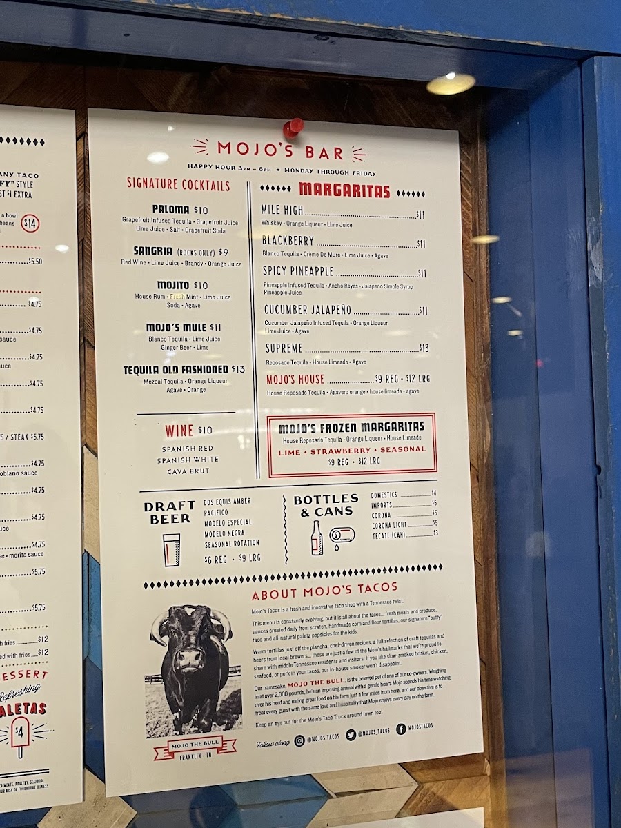 Introducing the Menu at Mojo’s Tacos – Franklin